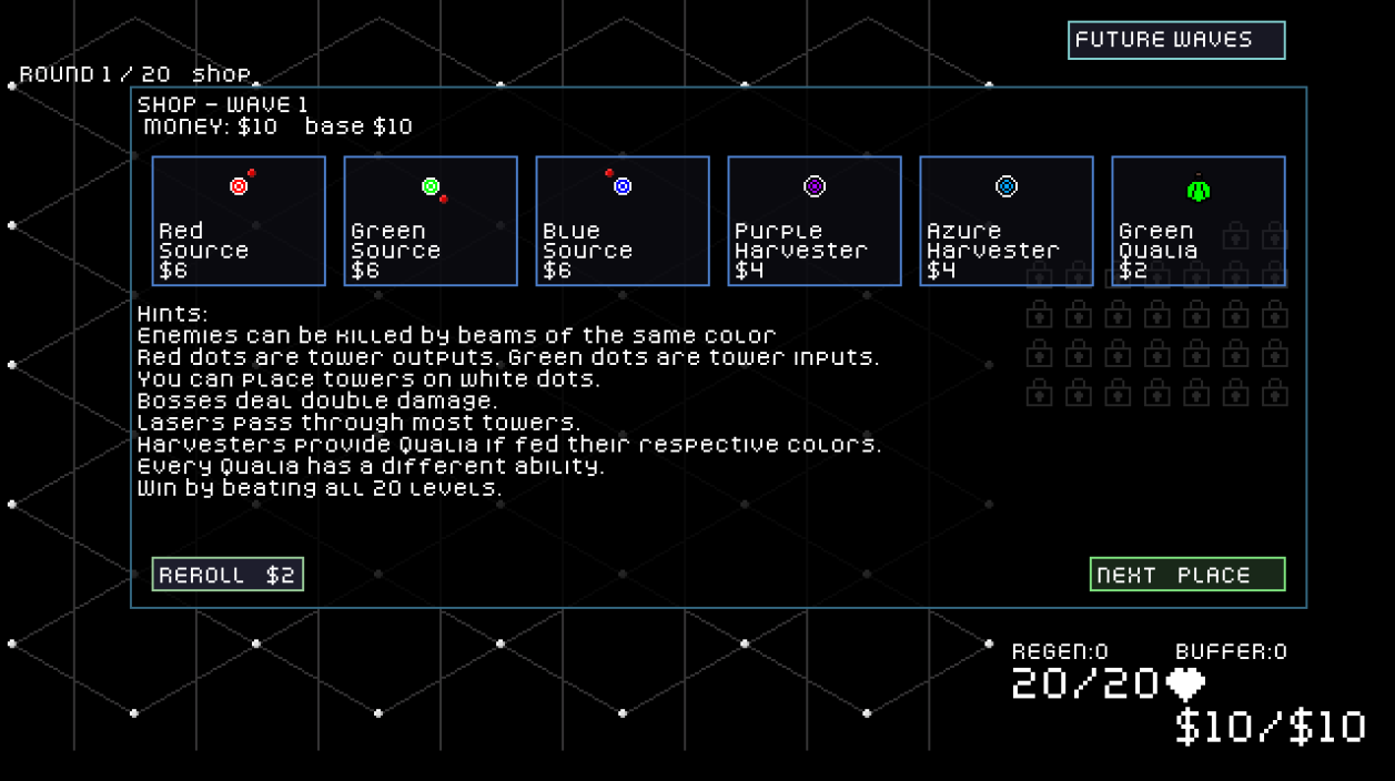 - Yellow (1 part Red, 1 part Green) - 1 Tower Upgrade (Click Qualia then Tower to use)